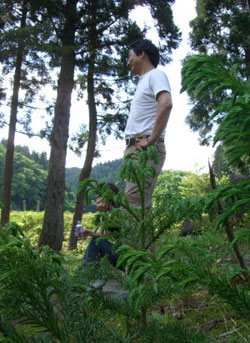 若杉さんと実生の若スギ。 |