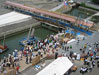 6/24灼熱の中、上棟式を終えた、ボクらの木橋。油津・堀川運河の屋根付き飫肥杉橋。