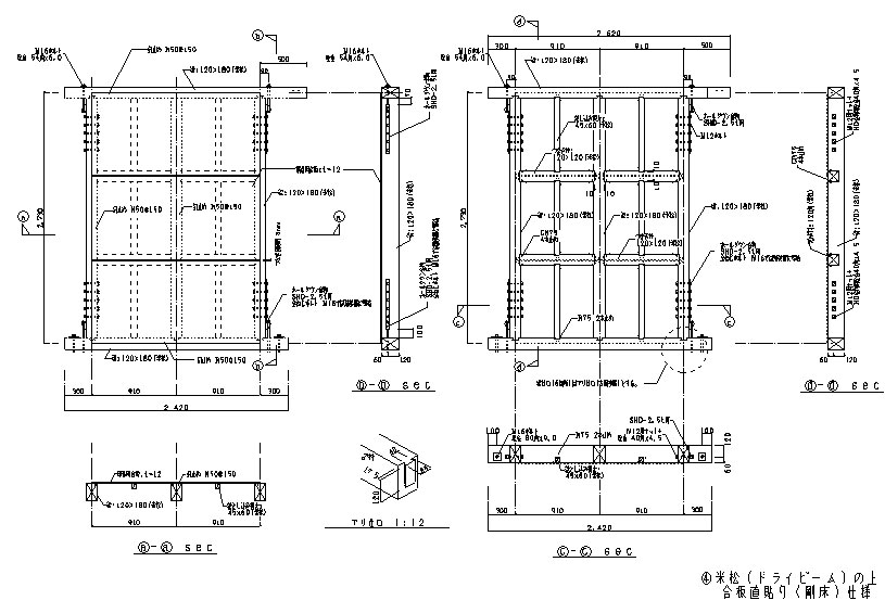 この仕様は、一般的な木造2階建てにおける水平構面であり、特に多いと思われる。