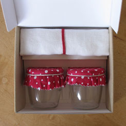 二つ目のケース案。BOXタイプ外観   二つ目の案開いた状態。ジャムとのセット提案