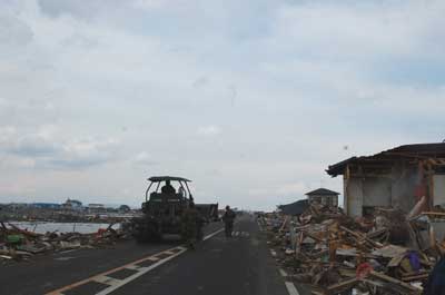 | 調査した時点では2週間以上たっていたにもかかわらず、現場ではまだ行方不明者等の捜索が続いていた。そのような情景でとった写真ではあるが、この写真の隠された真実が分かる人は非常に少ないと思う・・・。 | ||||||||||||||||