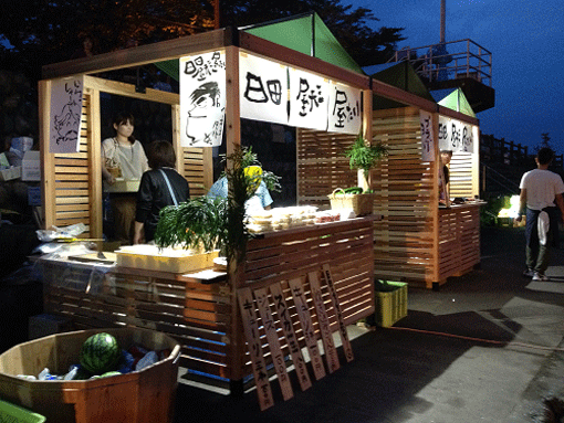| 日田市商工会議所によるスギを使った屋台の出店。 | |||||||||||||||||||||
