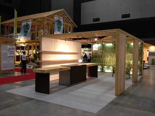 | 宮崎県産の杉によるインフィル(展示ブース)の中で、宮崎の県産品を展示、販売する。 | |||||||||||||||||||||